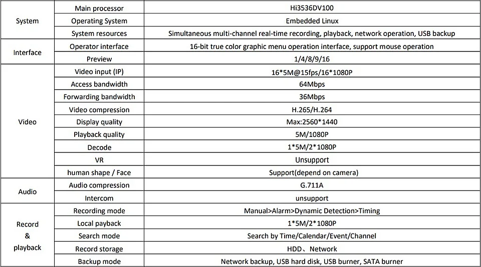 | 16CH*5MP H265 NVR Network Digital Video Recorder 1 SATA Cable Max 8TB Motion Detection P2P ONVIF CMS XMEYE Mobile Security |