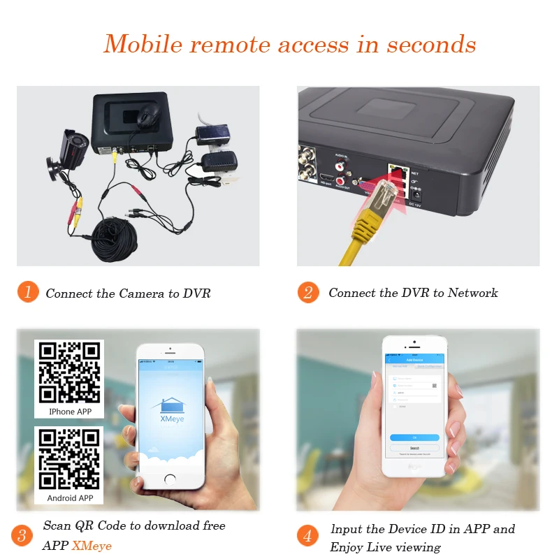 Install mobile APP through scanning QR-code or download from APP store.Then you can remote access the security system anytime anywhere