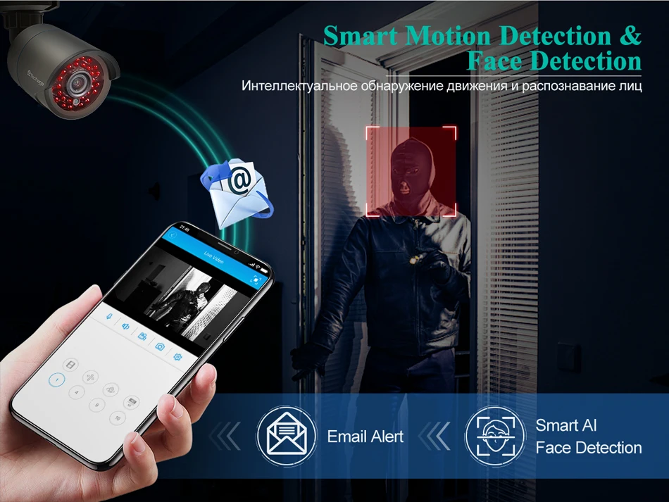 Smart Motion Detection & Face Detection & E-mail AlertsNote: Only when the app is opened will received the alarm