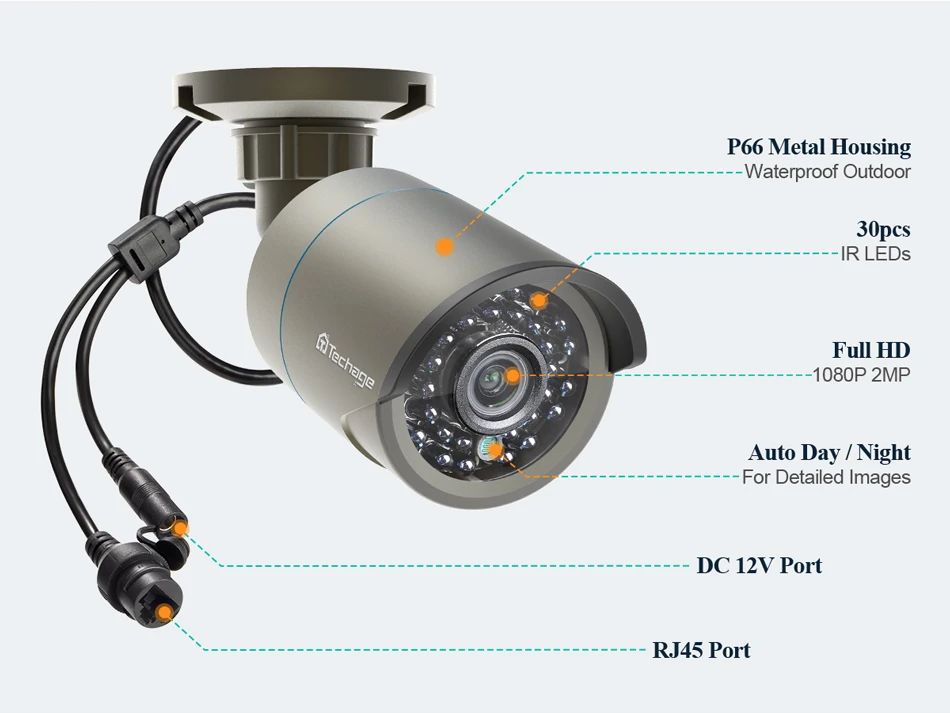 | Techage H.265 8CH 2MP POE Security Camera System 1080P POE NVR Kit P2P CCTV Video Surveillance Outdoor Audio Record IP Camera |