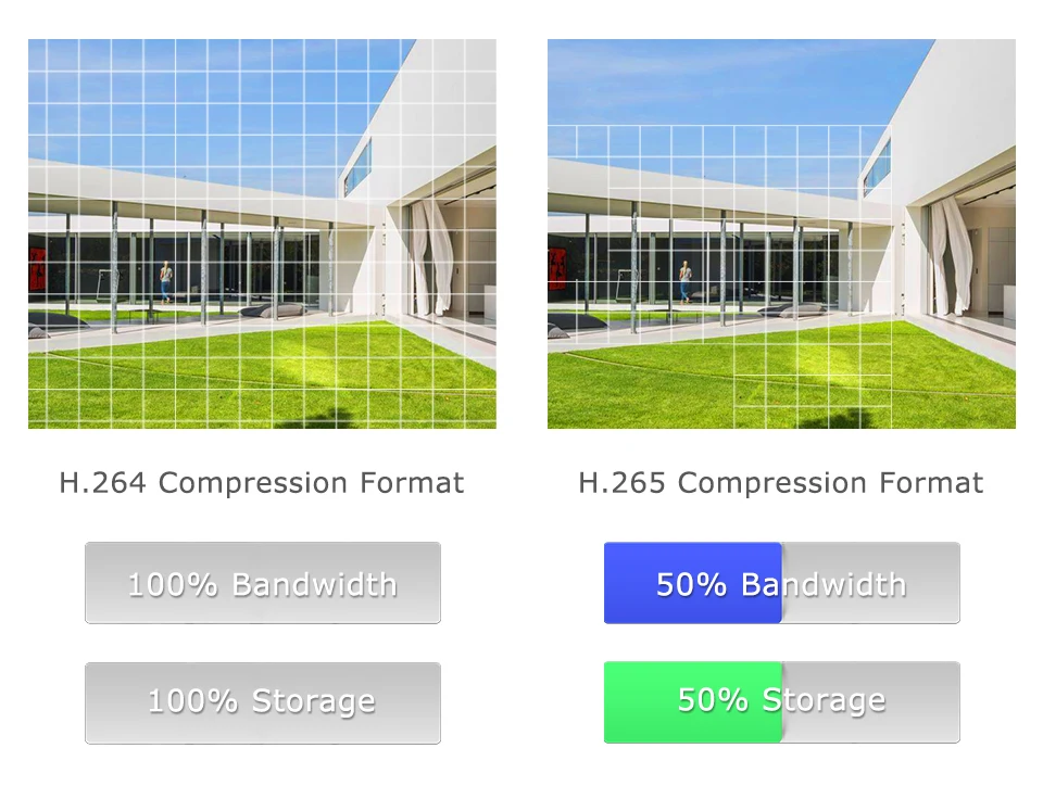 · H.265 More Clear , HD resolution offer you best image quality in a lower bit rate.· Save more storage space,can reduce 40%-50% file size,save your HDD storage space and reduce your purchase cost.