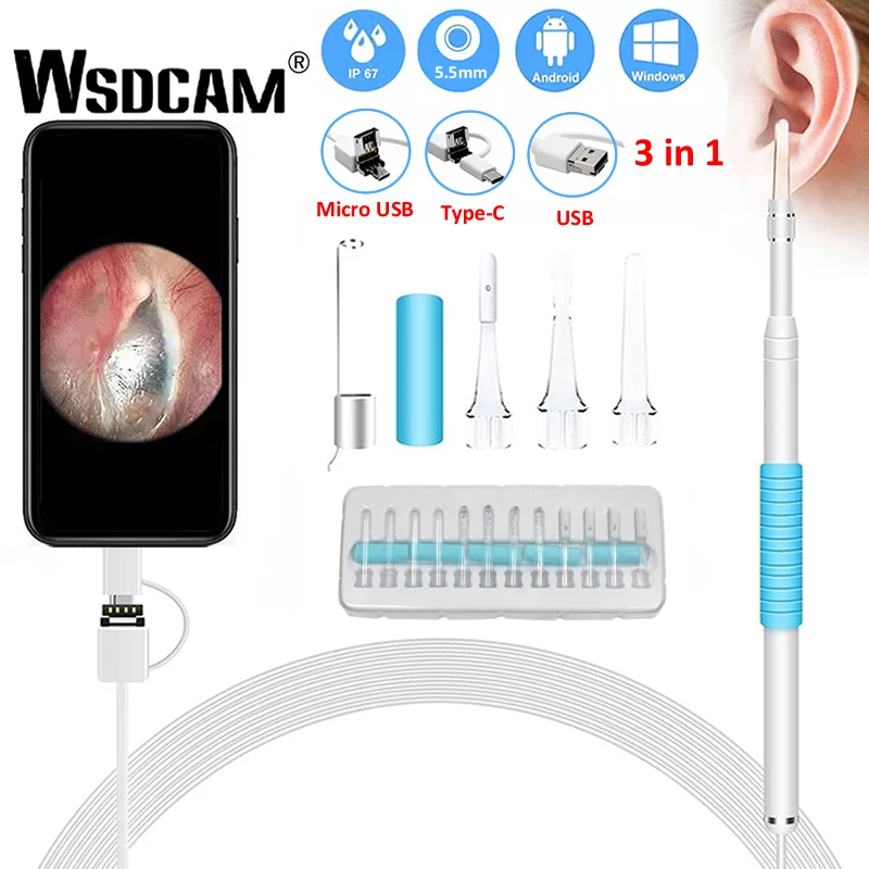 | In Ear Cleaning Endoscope USB Visual Ear Spoon 5.5mm 0.3MP Mini Camera Android PC Ear Pick Otoscope Borescope Tool Health Care |