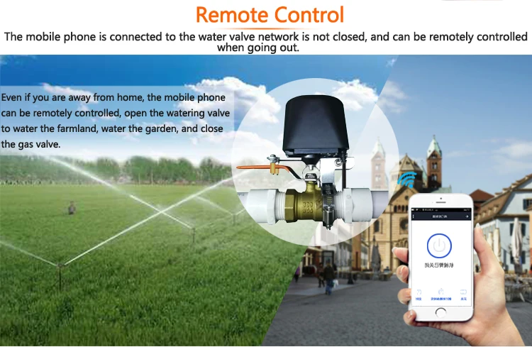 Gas Water Valve WiFi Features: SMART LIFE TUYA SMART VALVE WIRELESS WIFI WATER VALVE Ever if you are away from home,the mobile phone can be remotely controlled,open the watering valve to water the farmland,water the garden,and close the gas valve,you can shut or open the valve automatically with smart phone no matter where you.