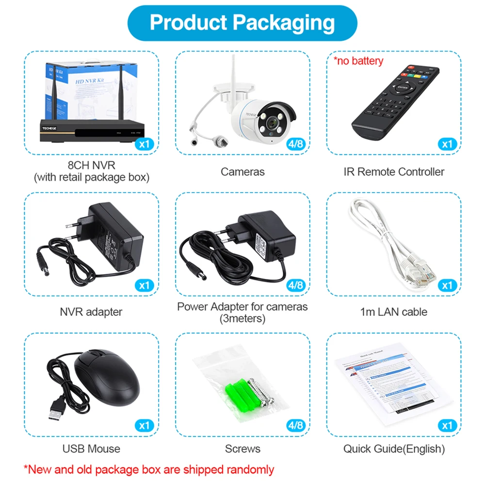 | Techege 8CH CCTV Security Camera System Wireless 3MP IP Camera WIFI NVR Kit CCTV Vedio Security Two Ways Audio Camera P2P H.265 |