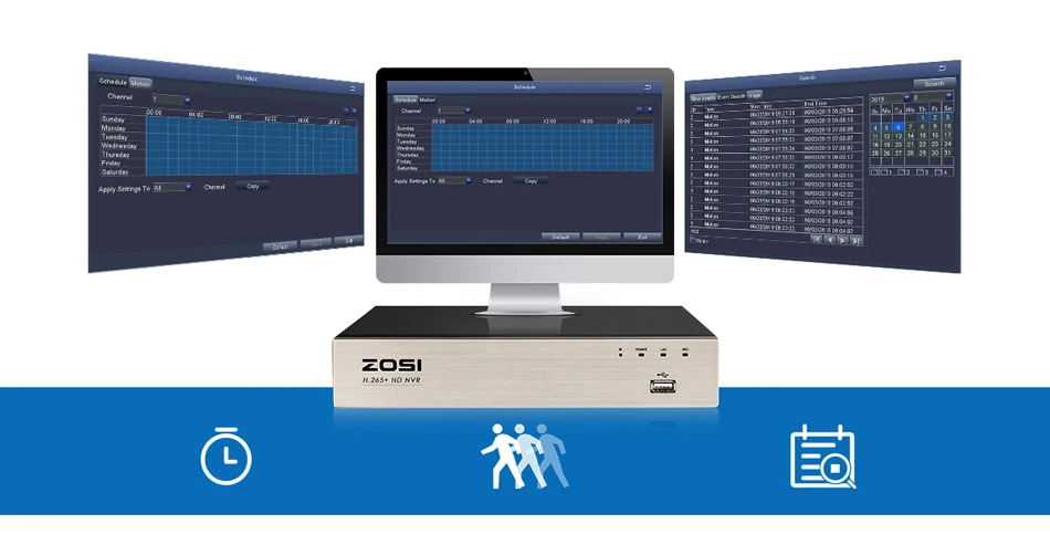 5MP camera security system enables you to select any one camera for full screen super HD playback of the pre-recorded footage.You can also search for the footage based on certain event, such as motion detection, PIR, and sensor.